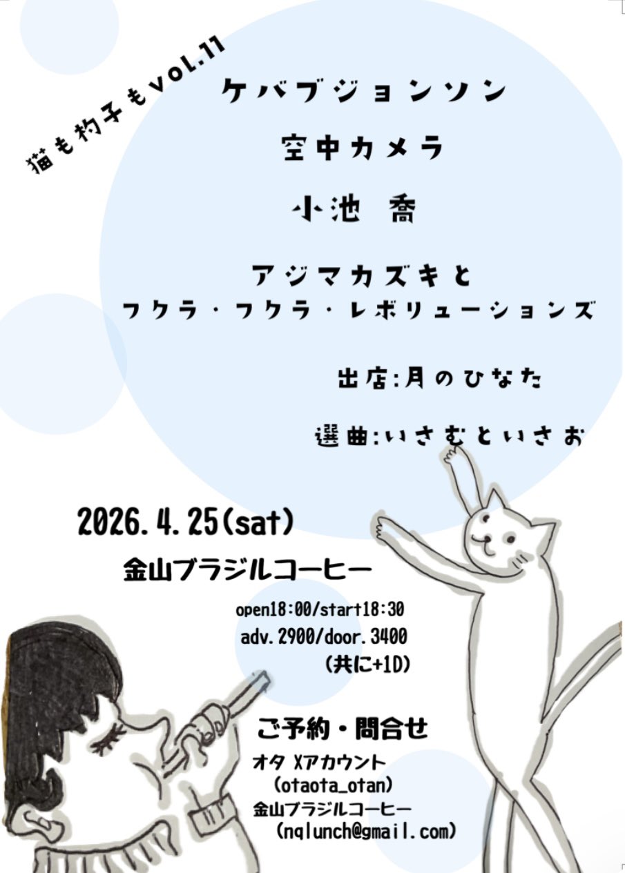 ●出演:のっぽのグーニー/ケバブジョンソン/アレクサンダース(from京都)/pq/BOMB KETCH(from岡山)/つむぎね/猫道(猫道一家)/ニールUMA(from福岡)/じじのほっぺた楽団(from大阪)/子は今(丸尾丸子バンド)(from京都)/キタムラジオ(北村早樹子)/真夜中フォークミュージック(三沢洋紀+テニスコーツ植野隆司)/小川直人/エーコ(from仙台)/PUNSUCA/マサラワーラー(カレー)/プリミ恥部(宇宙マッサージ)/タバタミツルのくじ引きデュオde哀愁でいと/シカク(出店) 他 -